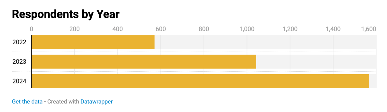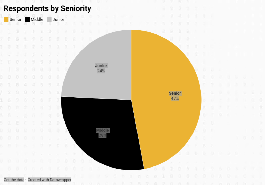 調查結果更偏向經驗豐富的群體,大多數提交者被歸類為「高級」職員(即擁有六年以上工作經驗)。職業級別的分類如下:初級(1-3 年經驗)、中級(3-6 年經驗)、高級(6 年以上經驗)。