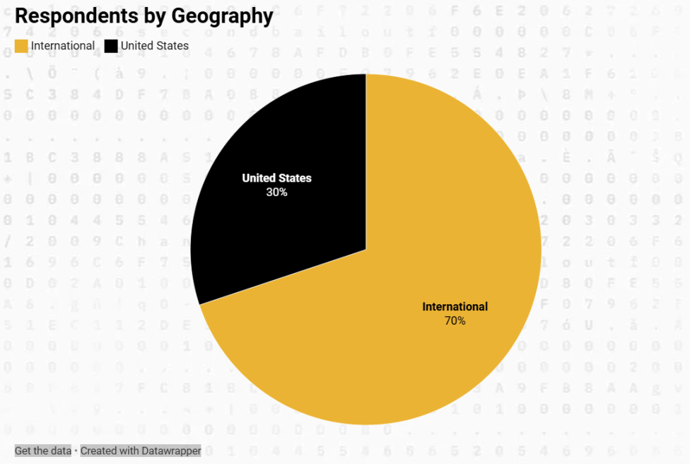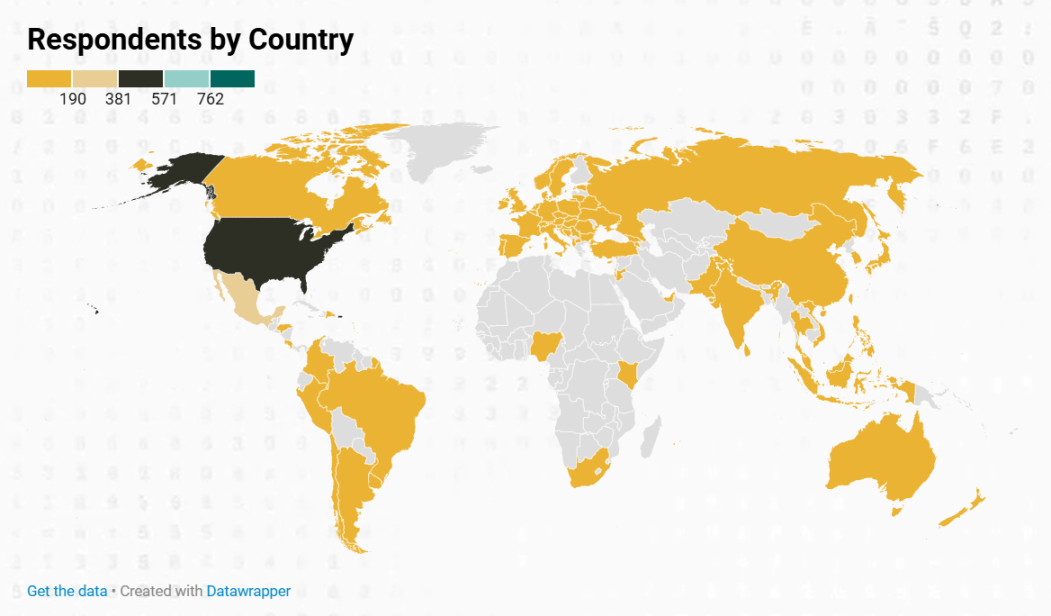 數據覆蓋 77 個不同的國家,其中 72% 為美國之外的地區,其餘 28% 來自美國。