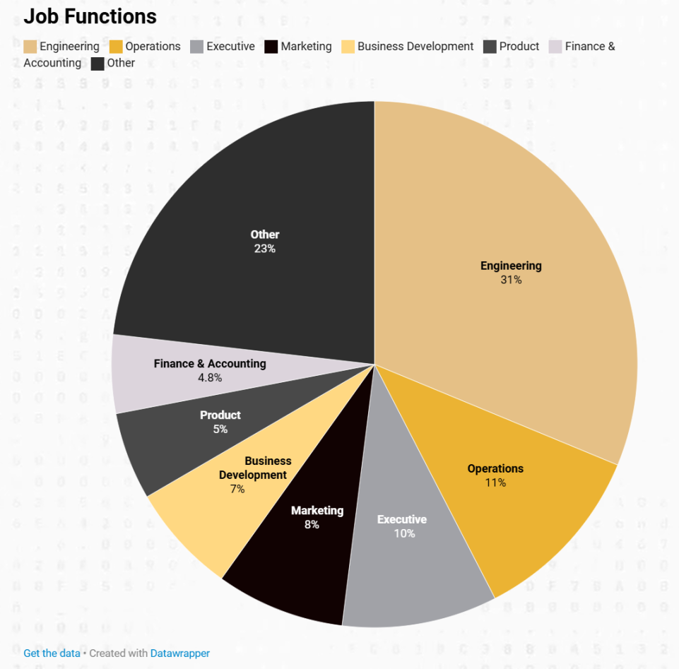 這些專業人士分佈在多個領域,包括 DeFi、CeFi、基礎設施、消費、NFT 和遊戲。