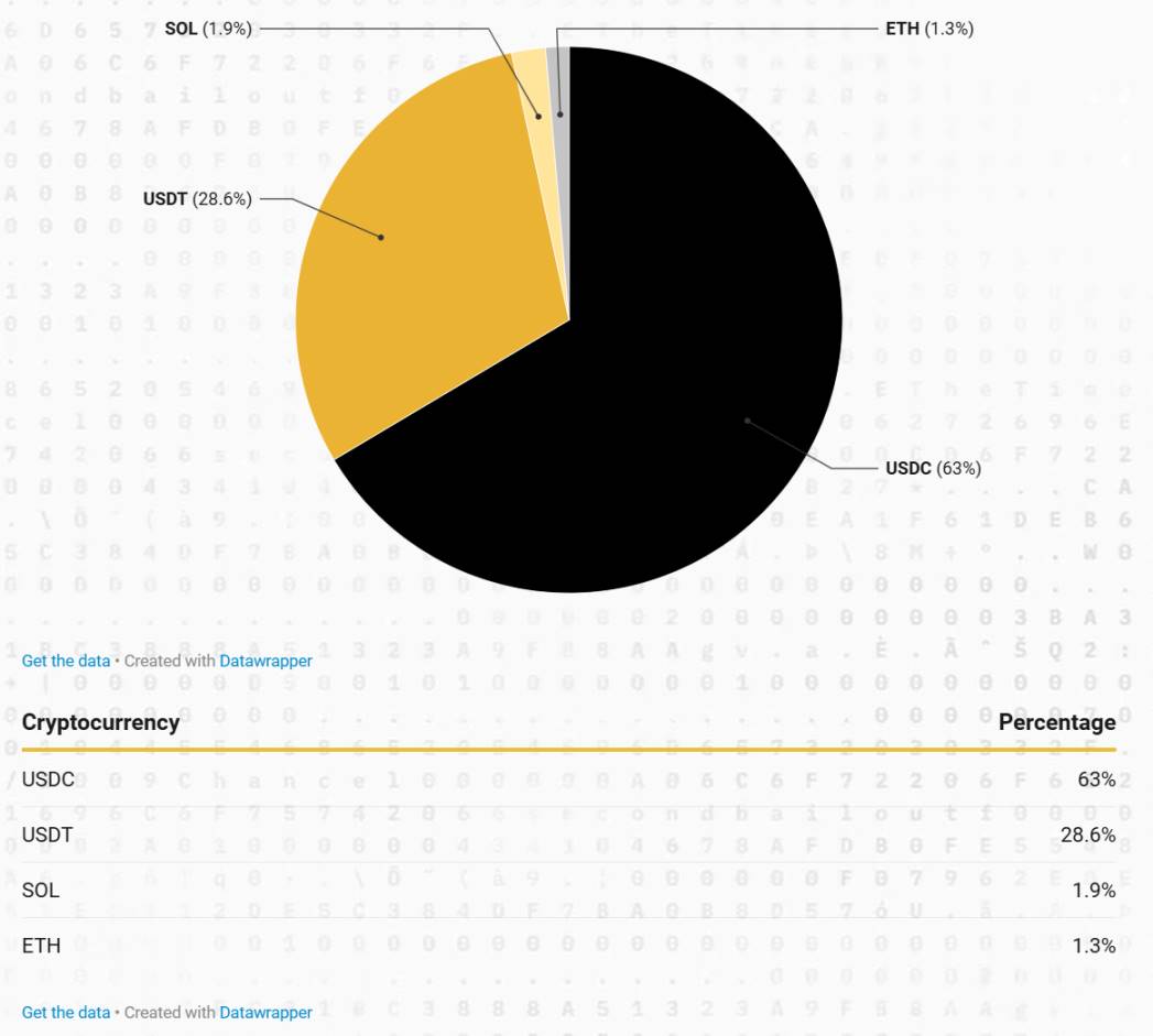 ● USDC (63%) 和 USDT (28.6%) 合計佔加密貨幣薪酬的 90% 以上,鞏固了其作為穩定和流動性薪酬選擇的地位。