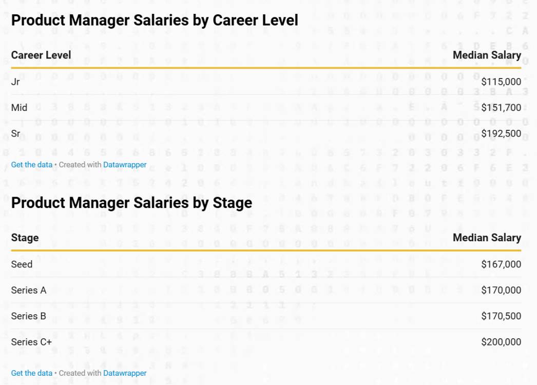初級產品經理的中位數基本薪資為 115,000 美元,中級為 151,700 美元,高級為 192,500 美元。
