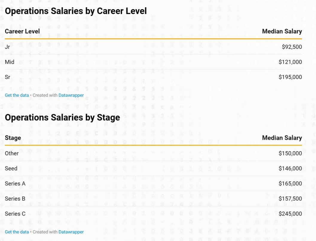 初級營運人員的中位數基本薪資為 92,500 美元,中級為 121,000 美元,高級為 195,000 美元。這一增長與經驗和責任的提升相符。