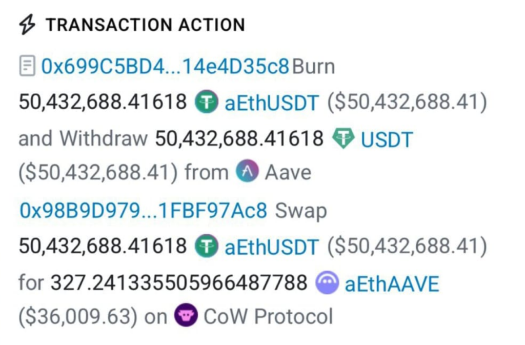 Earlier today, a user attempted to buy AAVE using $50M USDT through the Aave interface.