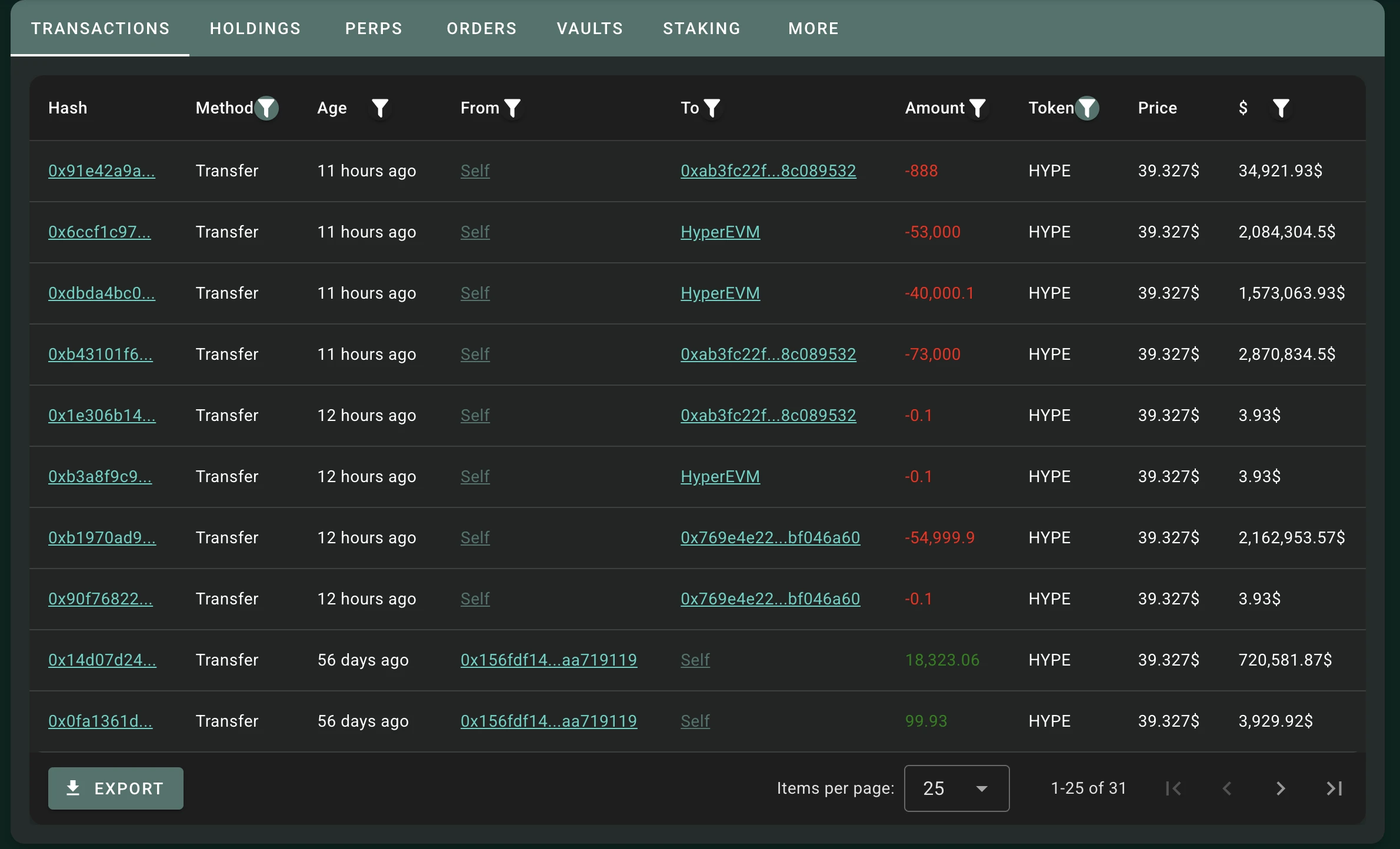 根據 @obese.potato.pip 的監測,疑似 Arthur Hayes 地址昨日接連轉出多筆 HYPE,包括向 Flowdesk 轉出 7.3 萬 HYPE(約 300 萬美元),向 Wintermute 轉出 4 萬 HYPE(約 164 萬美元),向 Galaxy 轉出 5.3 萬 HYPE(約 220 萬美元),向 Gate 轉出 5.5 萬 HYPE(約 230 萬美元)。