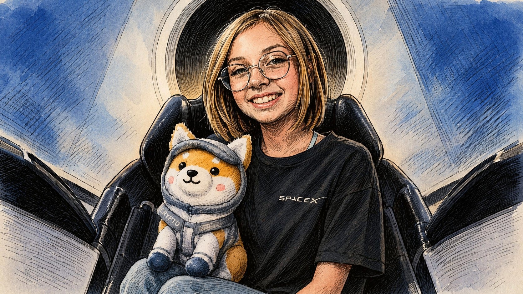 Asteroid 最初不是代幣,而是一隻任務玩偶。零重力指示器(zero-g indicator)是太空任務常見設計,當艙體進入微重力狀態,懸掛的玩偶開始漂浮,乘員可以直觀確認已脫離重力場。Liv 以馬斯克的寵物柴犬 Floki 為靈感設計了這隻柴犬造型玩偶,並在 2024 年 9 月 SpaceX Polaris Dawn 任務 中首次亮相,隨 Crew Dragon Resilience 升空執行任務。