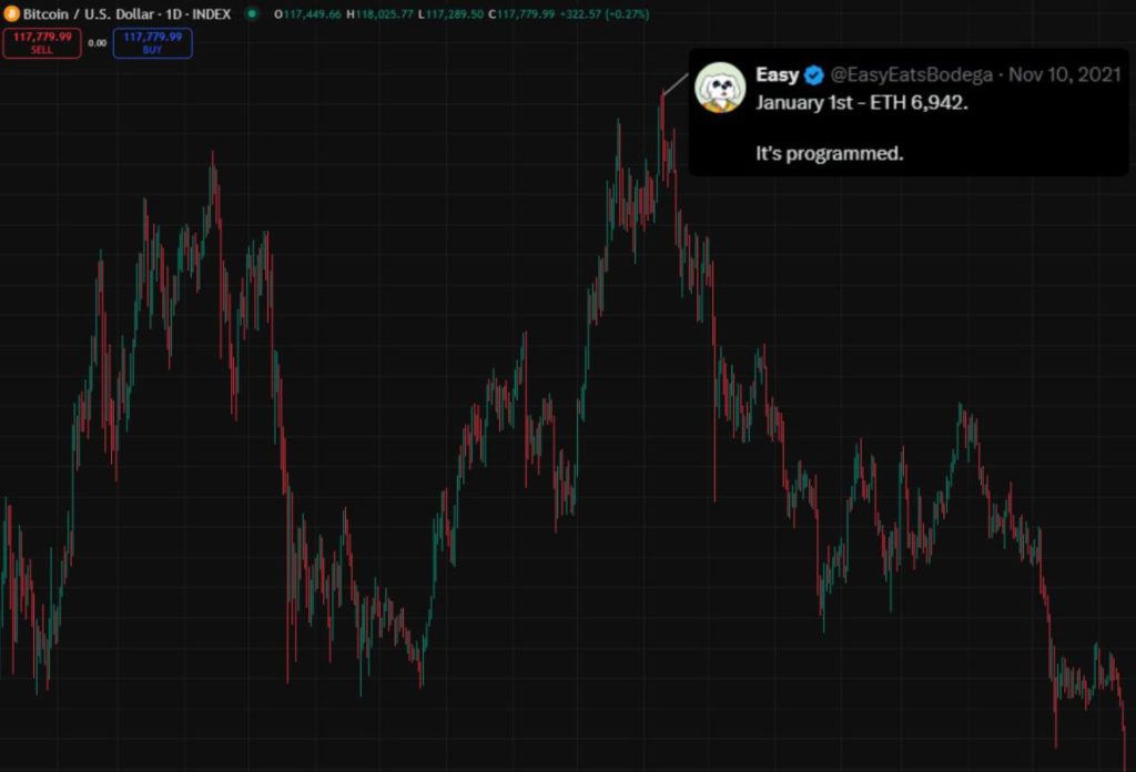 翻譯:1 月 1 日 —— 以太坊價格 6942 美元。劇本已經寫好。