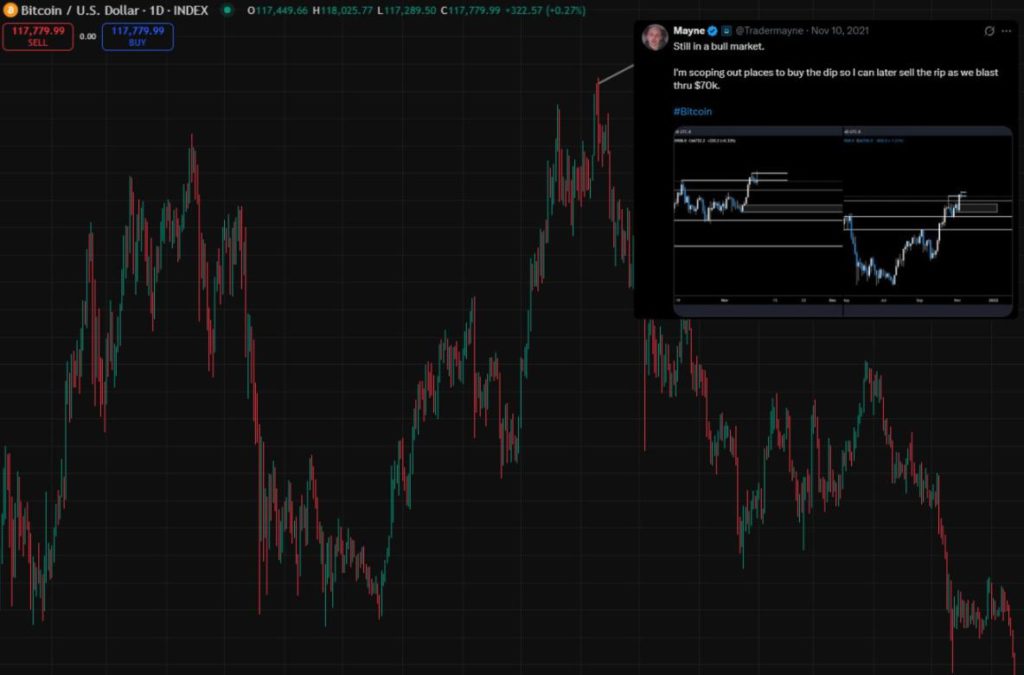 翻譯:仍然處於牛市。我正在尋找逢低買入的時機,這樣之後當比特幣價格衝破 7 萬美元時,我就能逢高賣出。
