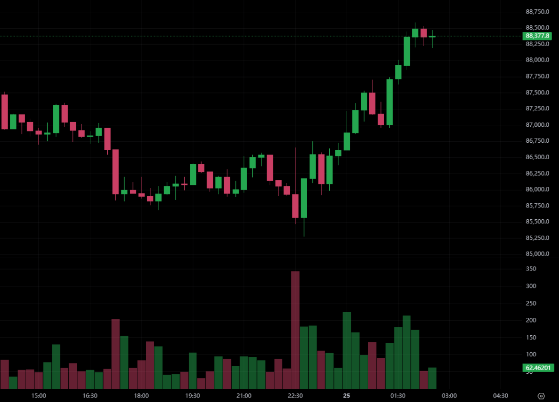 市場反應熱烈。CoinDesk 分析指出,亞馬遜這項投資計畫公布後,美股盤中迅速走高,納斯達克指數一度漲超 2.3%,標普 500 指數上揚 1.4%。同時,這波「風險偏好」情緒也迅速傳導至加密貨幣市場,比特幣、以太坊隨即雙雙出現反彈,撰稿當下 BTC 已經站上 8.8 萬美元。