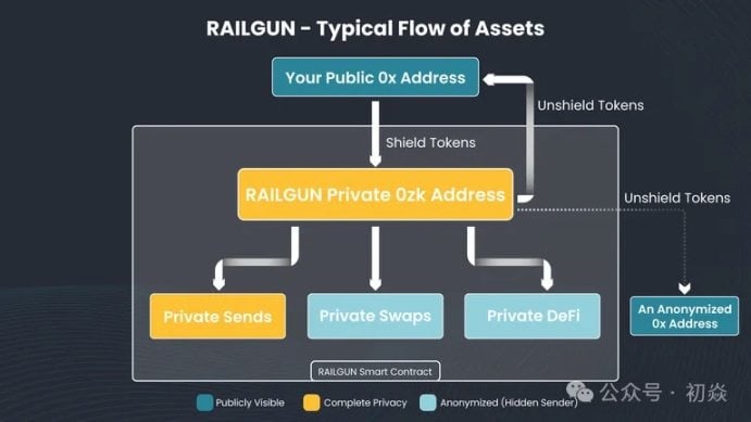 對於 Railgun 協議來講,代幣進入協議隱私池時利用 Chainalysis 的地址標籤庫進行反洗錢檢測,相當於佩戴了護身符,代幣接收地址、交易所以及機構地址都不再對來源於 Railgun 協議的鏈上轉帳交易恐懼,擔心違法反洗錢規定,因幫助犯罪組織洗錢遭到制裁和處罰。