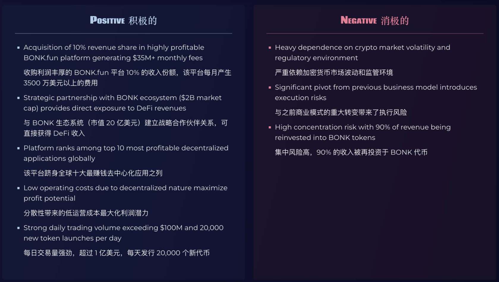 這被視為那斯達克歷史上首家上市公司透過這種方式「與 meme 幣分享收入」,還將與代幣持有者分享收益,因為收入最終流向 BONK 生態,支持持有者。
