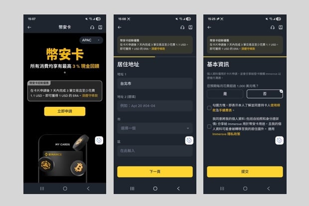 • 幣安卡 APAC 台灣申請步驟(5 分鐘、4 步驟)