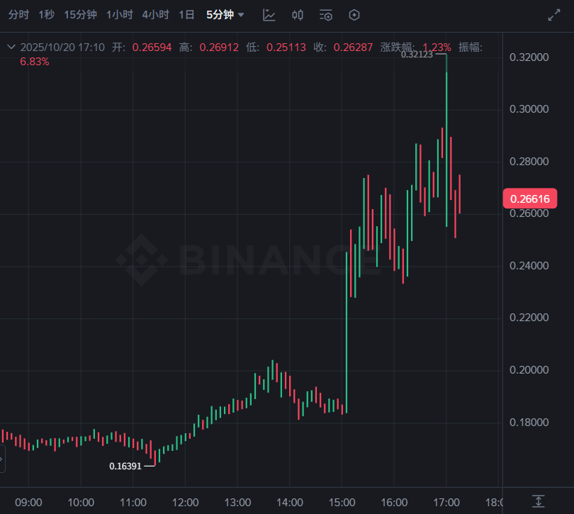 受此消息激勵,幣安人生在該公告發出後應聲拉漲,最高衝上 0.32 美元。撰稿時暫報 0.265 美元,近 24 小時漲幅高達 65%。