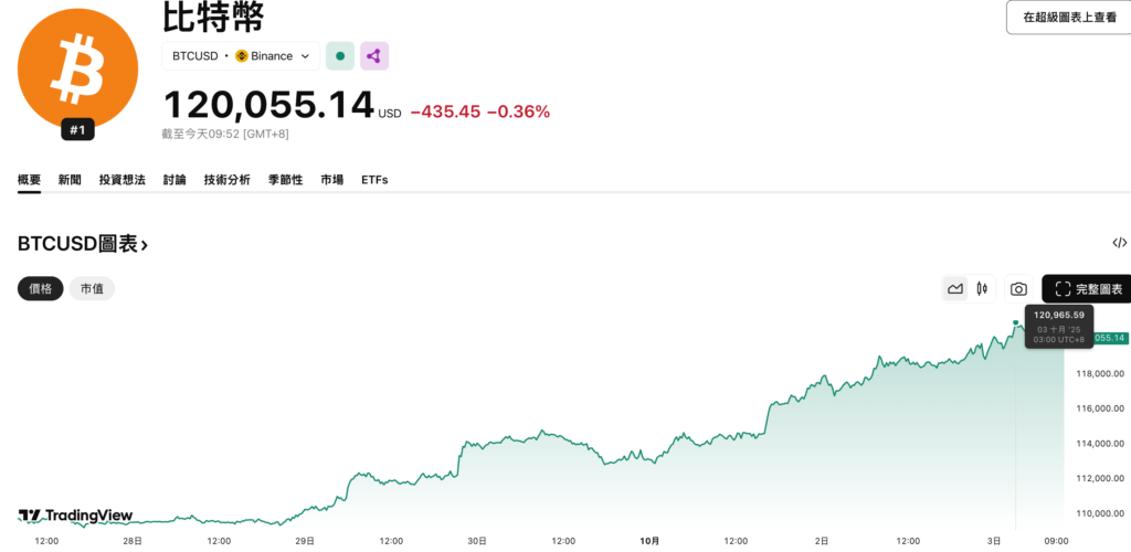 (背景補充:比特幣突破11.9萬寫一個半月最高、美股無懼政府關門,四大指數全收漲 )