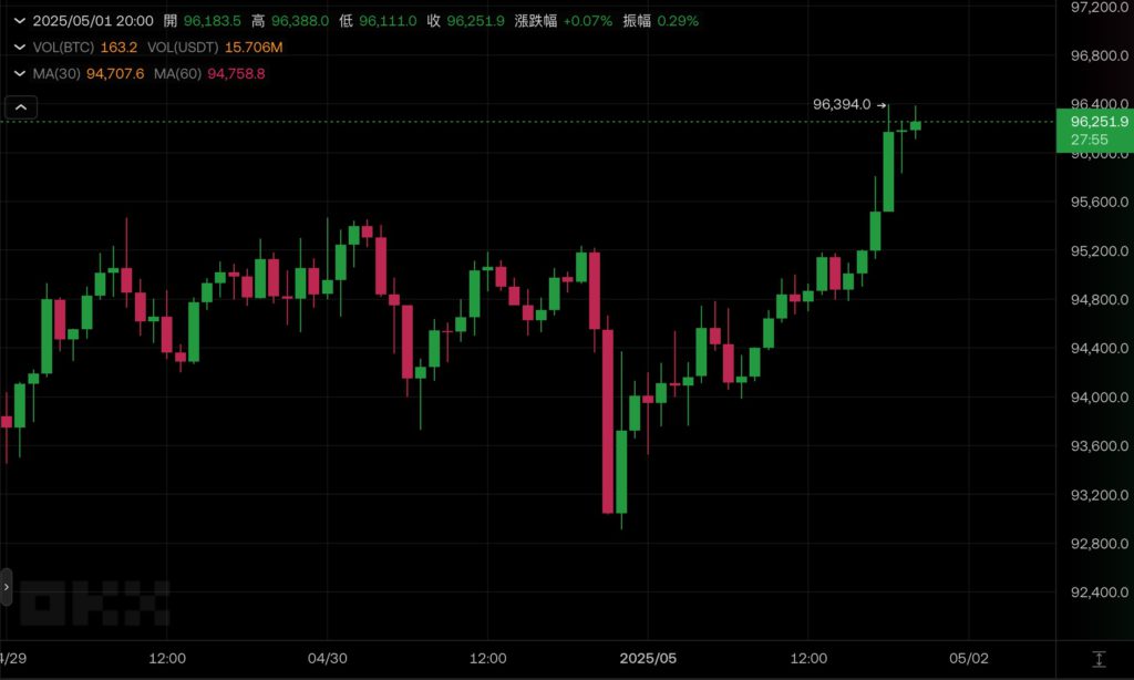 近期加密貨幣市場總市值維持在 3 兆美元附近,而領頭羊比特幣(BTC)則在關鍵的 $95,000 價位進行了七天窄幅盤整,終於在今(1)日晚間突破 9.6 萬美元,不少市場分析師預測,連日的震盪已經為下一步更為強勁的價格走勢積蓄了動能。