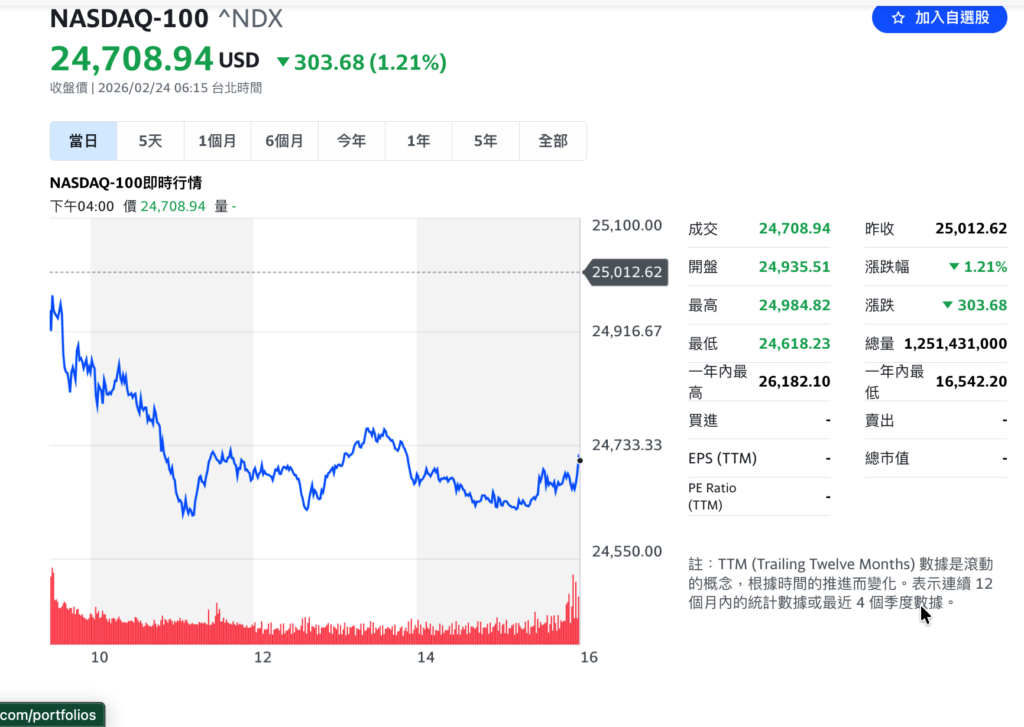 美股週一收盤三大指數全線下挫,道瓊工業指數收跌 1.66%、標普 500 指數跌 1.04%、那斯達克指數跌 1.13%。