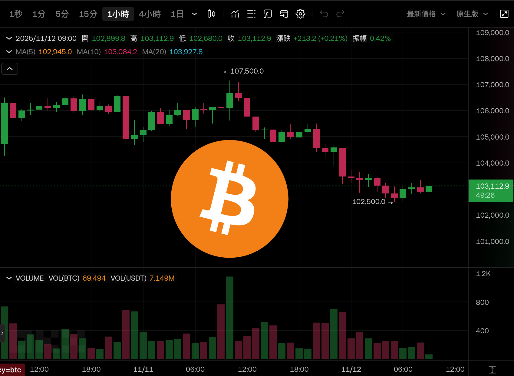 • 比特幣 BTC 即時價格