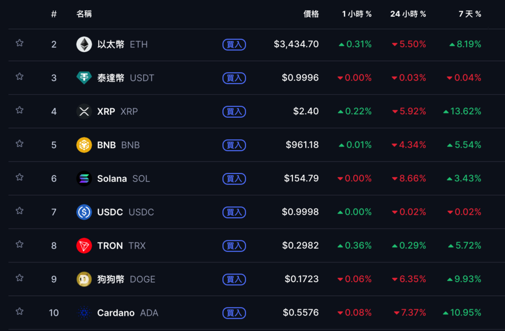 • 以太幣 ETH 即時價格