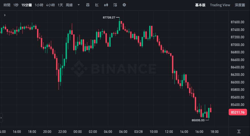孫宇晨登上富比士封面後,比特幣在今日從 87200 美元持續下跌,現報 85211 美元,近 24 小時下跌 2.49%。
