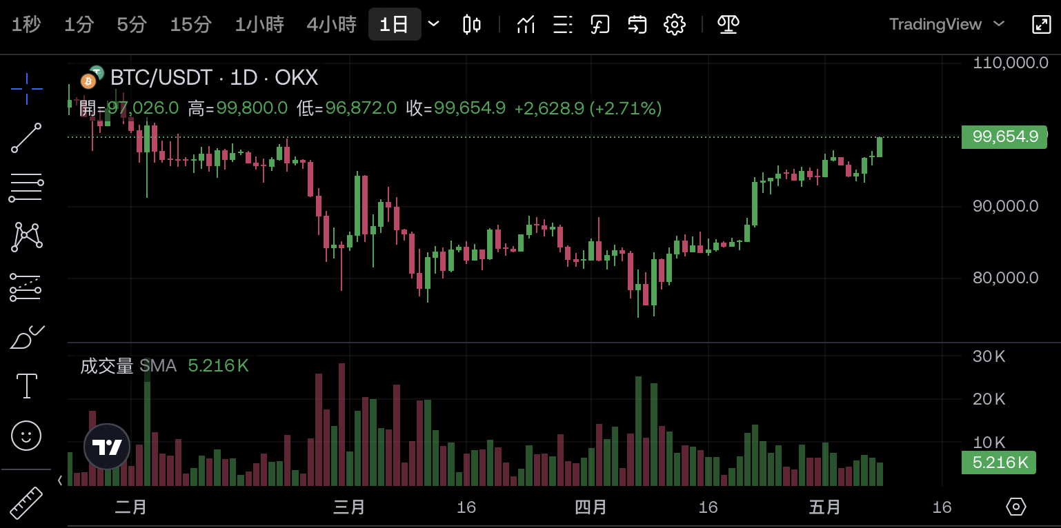 全球加密貨幣市場聚焦比特幣價格正緊貼歷史性的10萬美元大關。截至發稿,根據 OKX 現貨價格,比特幣現貨交易價格約在 99,600 美元附近波動,距離10萬關卡僅一步之遙。