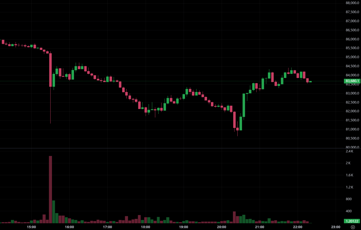 Hayes 的發言正值加密貨幣市場波動加劇之際。撰稿當下,比特幣在今(21)日晚間 20:15 左右一度跌破 8.1 萬美元後又迅速反彈,最高站上 8.4 萬美元。不過很快賣壓再度湧現,比特幣當下暫報 83,650 美元,近 24 小時跌幅仍達到 6.9%。