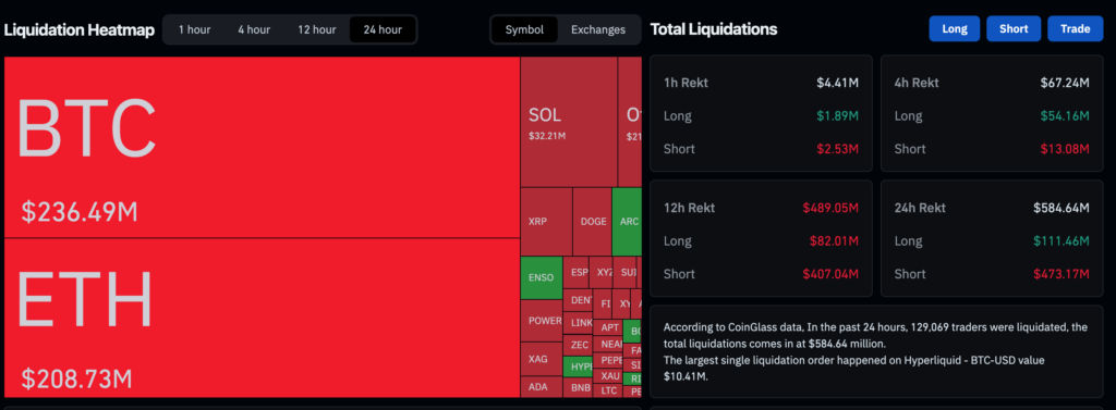 這波急拉行情讓押注下跌的空方措手不及。據鏈上數據顯示,過去 24 小時內空單爆倉金額高達 4.73 億美元,成為近期規模最大的空方清算事件之一。多頭趁勢反攻,一舉擊穿多個空單密集掛單區,形成連鎖清算效應,進一步推升價格至 7 萬美元上方。