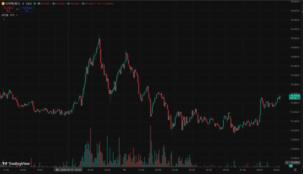 第一,4/16 前後可能登場的第二輪美伊談判——談判有沒有進展,直接決定市場對「和談溢價」的去留。第二,$75,000 附近約 $2 億美元的空單清算籌碼是否被觸及——若被觸發,軋空動能將提供下一段上衝動力;若 $75K 頂住,反彈可能就此止步。第三,美伊雙方的公開表態——任何一方升高對抗語氣,都可能讓這盤棋的走向瞬間逆轉。