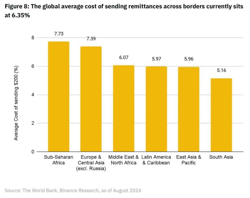根據世界銀行的資料,跨境匯款的平均成本已從 2023 年第四季度的 6.39% 下降到 2024 年第一季度的 6.35%。根據他們對世界各地區平均成本的細分,撒哈拉以南非洲是匯款成本最高的地區,平均成本為 7.73%。