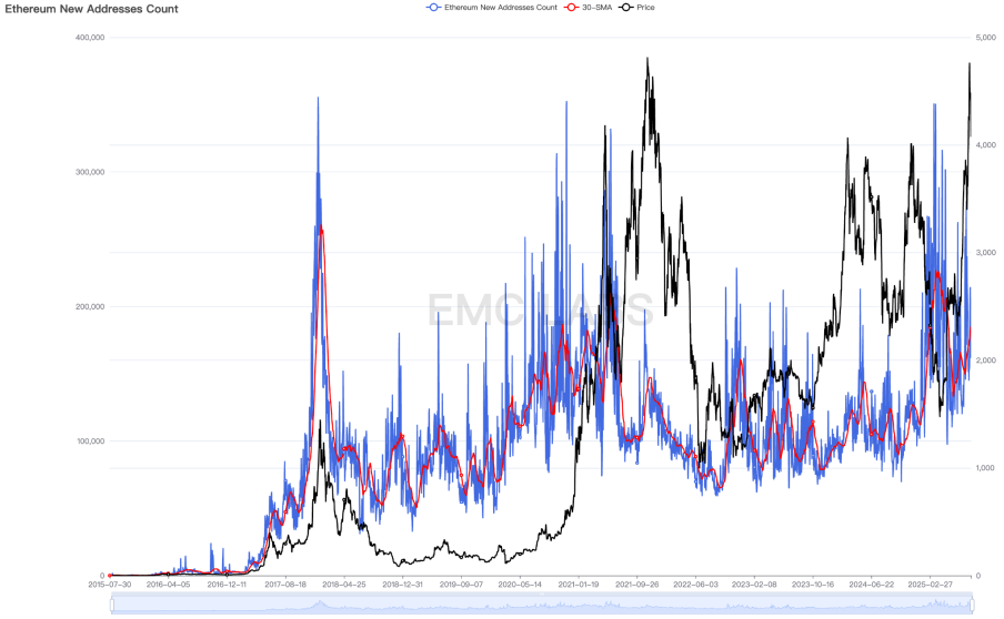 但當觀察最大的 SCP 平台 Ethereum 時,我們可以注意到本週期新增地址出現了相同的情形。