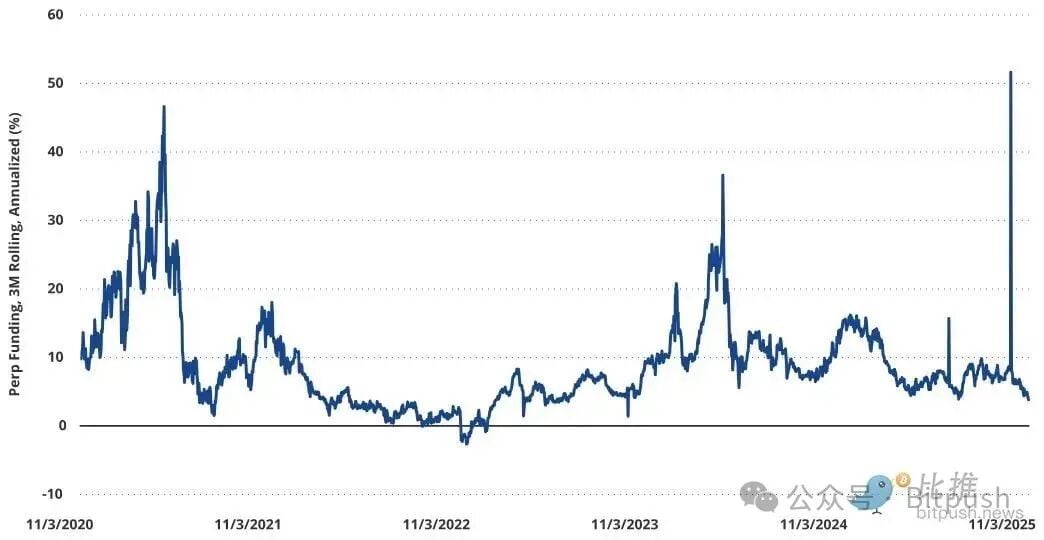 這裡有個很有意思的插曲——像 Ethena 這類創新協議,還有那些專業的交易機構,都在大規模進行「現貨買入 + 永續合約做空」的套利操作。光是 Ethena 在 2025 年 10 月規模就達到 140 億美元,雖然後來縮水到 83 億,但這麼大的套利盤實際上把資金費率給壓低了,讓這個傳統指標有點「失真」。