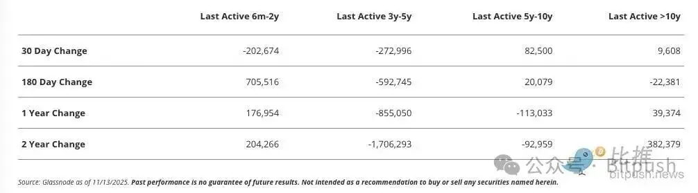 比特幣從高點下跌 13%,引發市場恐慌。然而鏈上數據顯示,真正的賣壓來自中期持有者,而非早期巨鯨。5 年以上幣齡代幣持續增長。本文源自VanEck所著文章,由比推BitPush整理、編譯及撰稿。