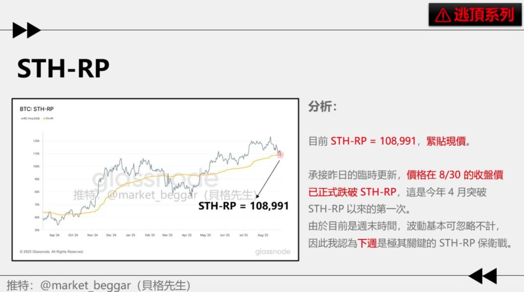 • STH-RP:目前約為 108.9 K,緊貼著現價,下週或為關鍵博弈