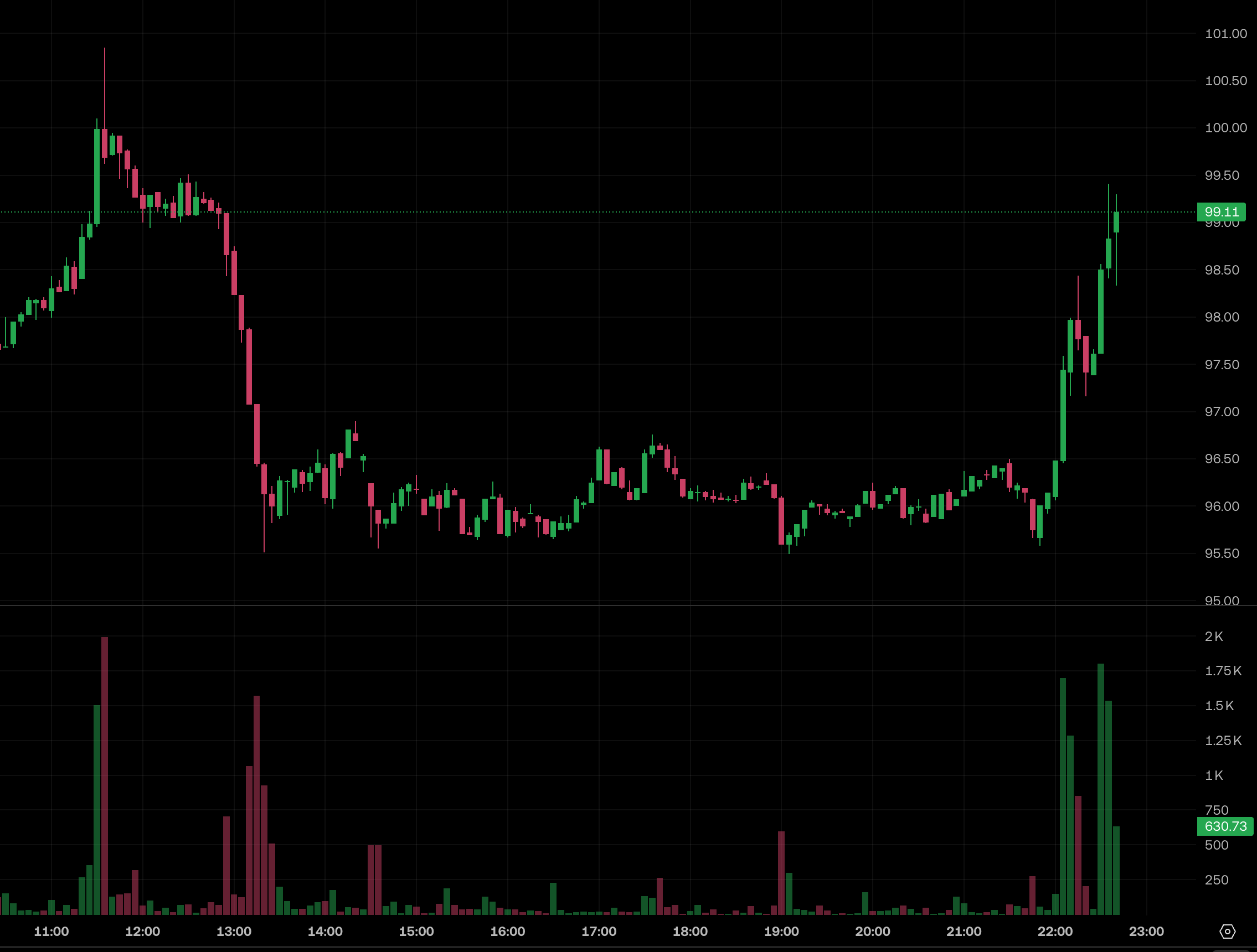 受到 Circle Ventures 資金挹注與背書的利好消息激勵,市場買盤迅速湧現。據市場數據顯示,AAVE 代幣價格在消息曝光後短線拉升 3.6%,價格一度逼近 100 美元的重要心理關卡,暫時報價為 98.95 美元。