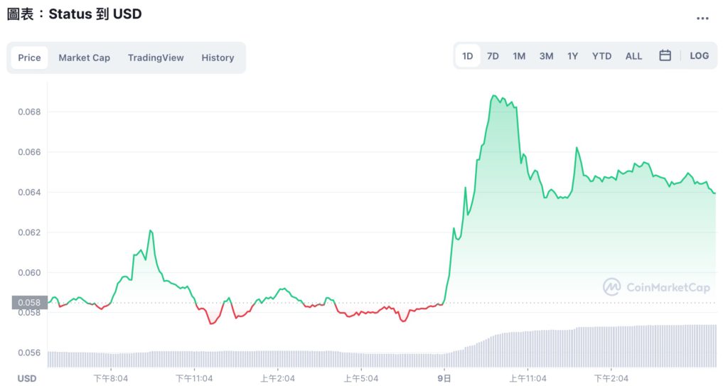 SNT 代幣目前市值為:4.02 億美元,排名#2926。