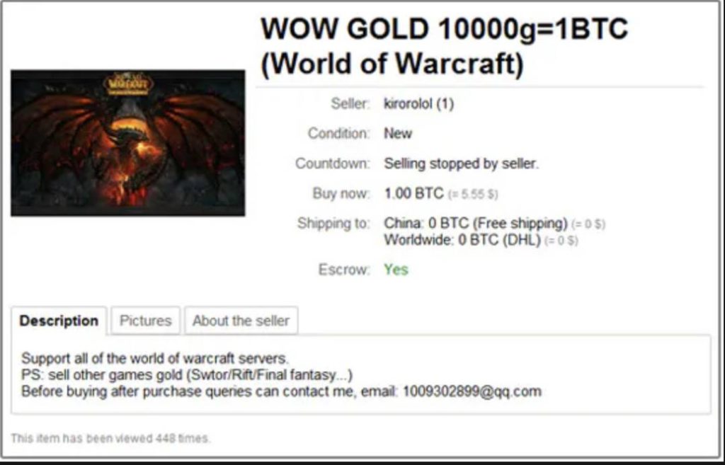 一個顯著的例子是比特幣在具有活躍經濟體的 MMORPG 遊戲(如魔獸世界)中用於交易物品。此外,比特幣還用於暗網市場如絲綢之路上的非法交易,涉及毒品、武器和色情內容。