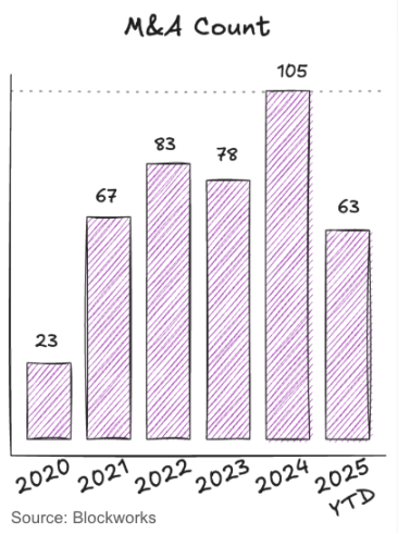 過去兩年,加密貨幣並購交易持續改善,這預示著流動性和退出機會的良好發展。近期發生的包括 NinjaTrader、Privy、Bridge、Deribit、HiddenRoaad 等在內的大型並購交易,預示著整合和承銷更多加密股權風險投資的好兆頭。