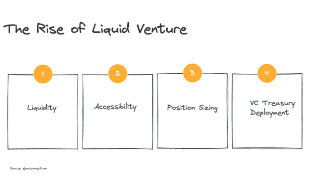 公私資本市場的融合是風險投資的發展方向,隨著企業推遲上市,更多傳統 VC 選擇在流動性市場(IPO 後持有工具)或二級市場進行投資。加密貨幣正處於風險投資的前端。