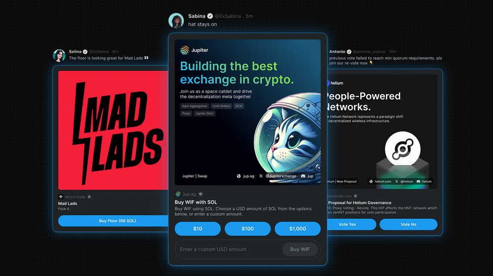 開發者不需要再為了每個適配的頁面單獨做開發或單獨呼叫類似 Jupiter 的 API 介面,一個連結適用所有頁面。對使用者來說,未來在推特上看到一個 Solana 的金狗專案,也不用先複製代幣地址再開啟交易所或者機器人進行互動,直接在一個介面裡就能完成交易過程,加快了沖土狗的效率。