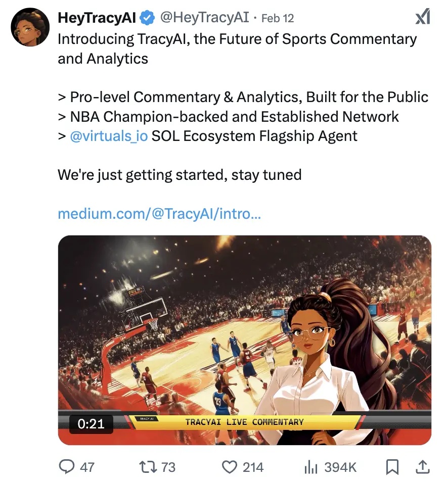 我們也在見證 Web2 垂直 Agent 與加密原生模型的融合。典型例子是 virtuals_io 在 Solana 上的推出。