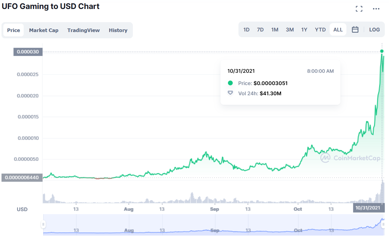 UFO 目前市值達 7.61 億美元,為第 137 大加密貨幣。