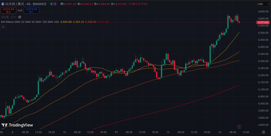 以太坊突破 4,600 美元