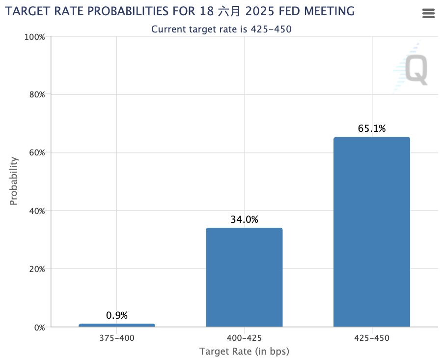 這份報告也讓原本押注 6 月降息的市場態度急轉直下。CME FedWatch 工具顯示,市場對 6 月降息的機率由上週的 75% 驟降至 34%。高盛與巴克萊亦同步將首次降息預估延後至 7 月。
