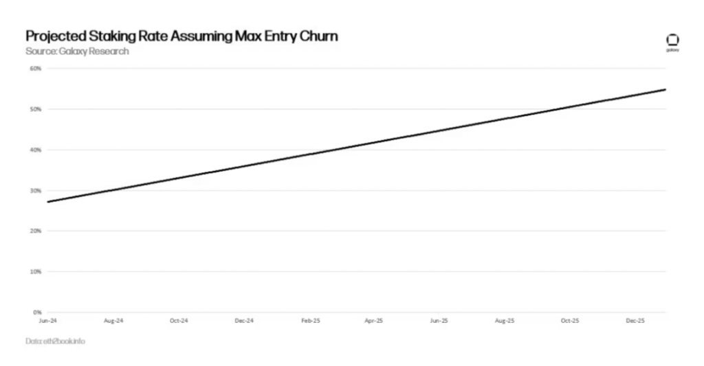假設以太坊上的質押需求像過去兩年一樣呈線性增長,那麼預計 2024 年的質押率將超過 30%。如本報告前面所述,更高的質押率將減少新 ETH 發行帶來的回報。