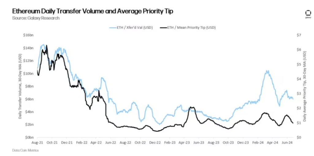 過去兩年,交易活動有所減少,導致驗證者的基本費用、優先費用和 MEV 減少。