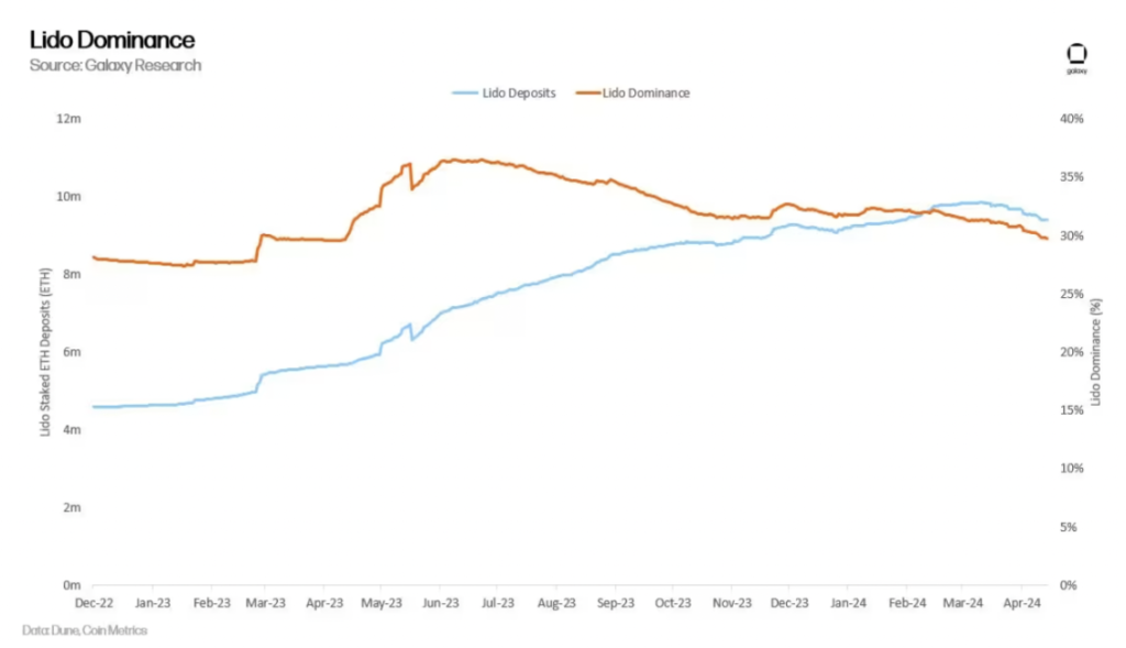- 流動性質押代幣 (LST) 主導地位:如果質押率增加,那麼集中在一個質押池(如 Lido)中的 ETH 數量可能會增加,從而造成一個實體或智慧合約應用程式的中心化風險,以及對以太坊安全性產生過大影響的風險。