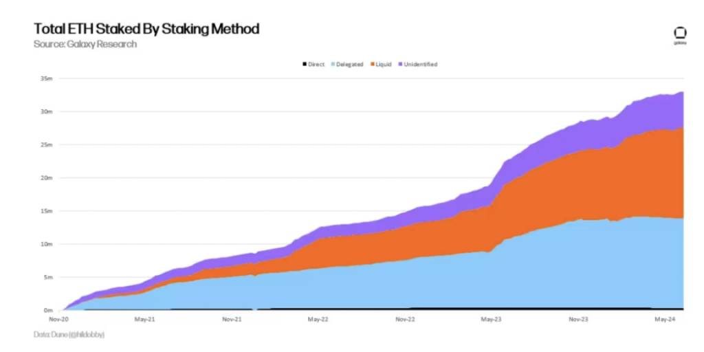 三種不同方法質押的 ETH 總量