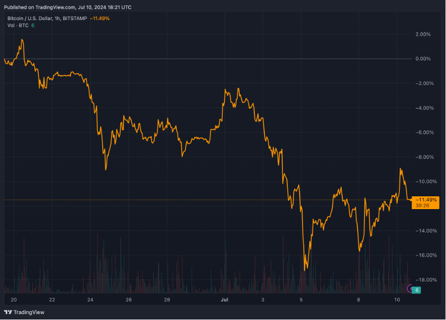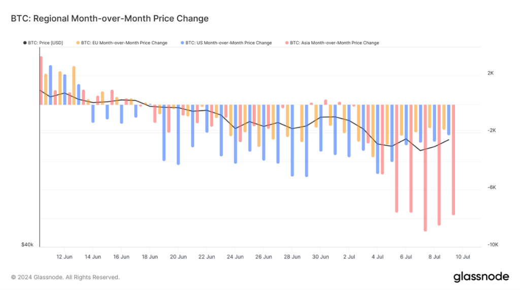 儘管在歐洲交易時間內會出現下跌,但在美國交易時間下跌更為明顯。尤其是過去 5 天,月度環比下跌主要發生在亞洲交易時段。這表明,德國拋售並不是導致大部分價格下跌的直接原因,因為德國政府官員可能不會在夜間出售他們持有的比特幣。