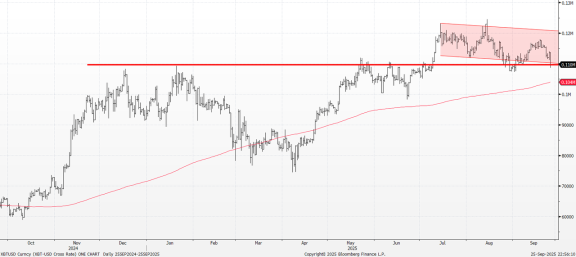 Schiavone 特別提到,11 萬美元附近成為比特幣的重要技術支撐,「低於 200 日移動均線不會有好事發生。」