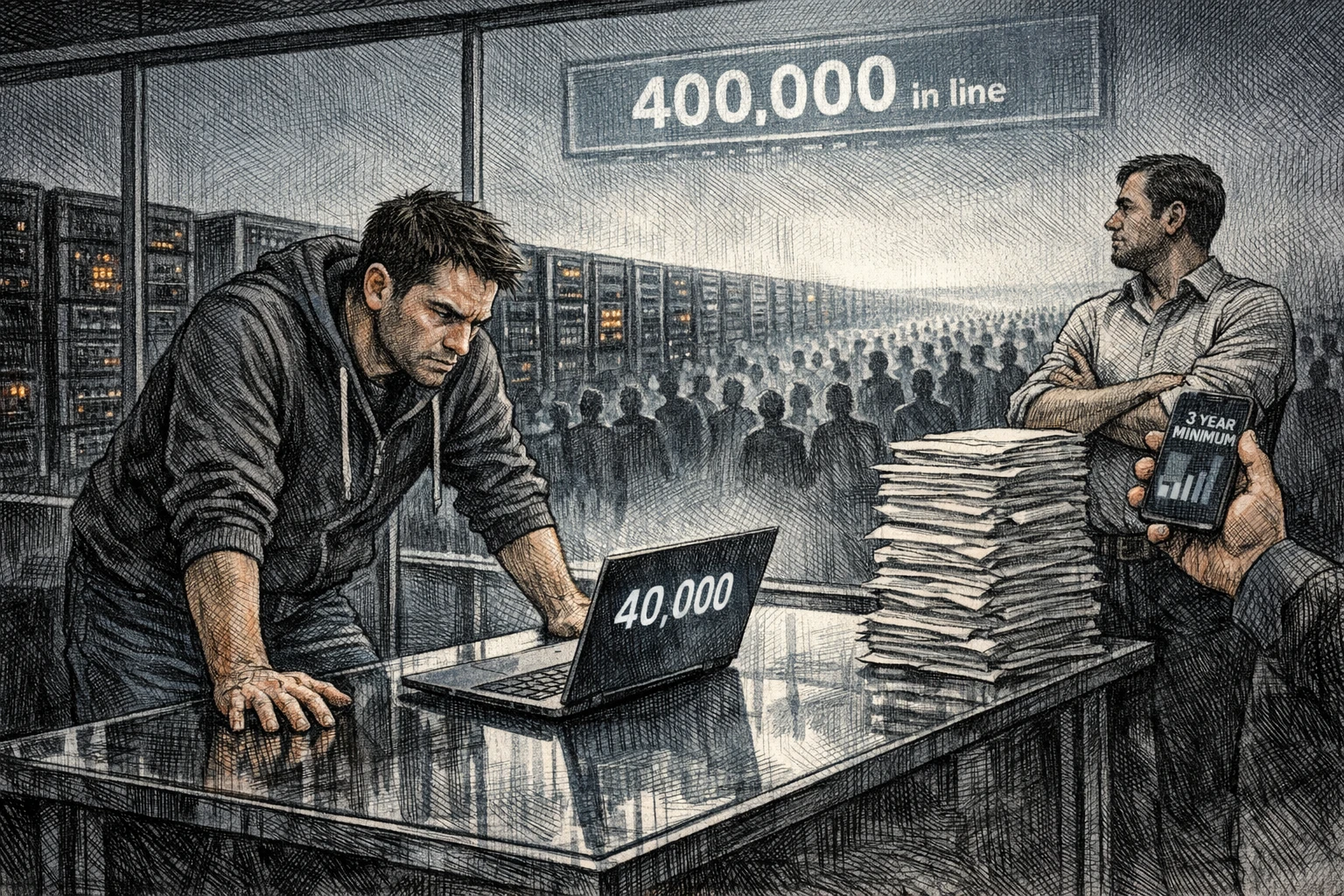 影像生成新創 Krea(累計融資 8,300 萬美元,投資方包括 Andreessen Horowitz 與 Bain Capital Ventures)半年前以每卡每小時 2.80 美元租下數百顆 NVIDIA Blackwell 晶片,簽了 6 個月合約。續約時,多家雲端廠商直接不接電話。