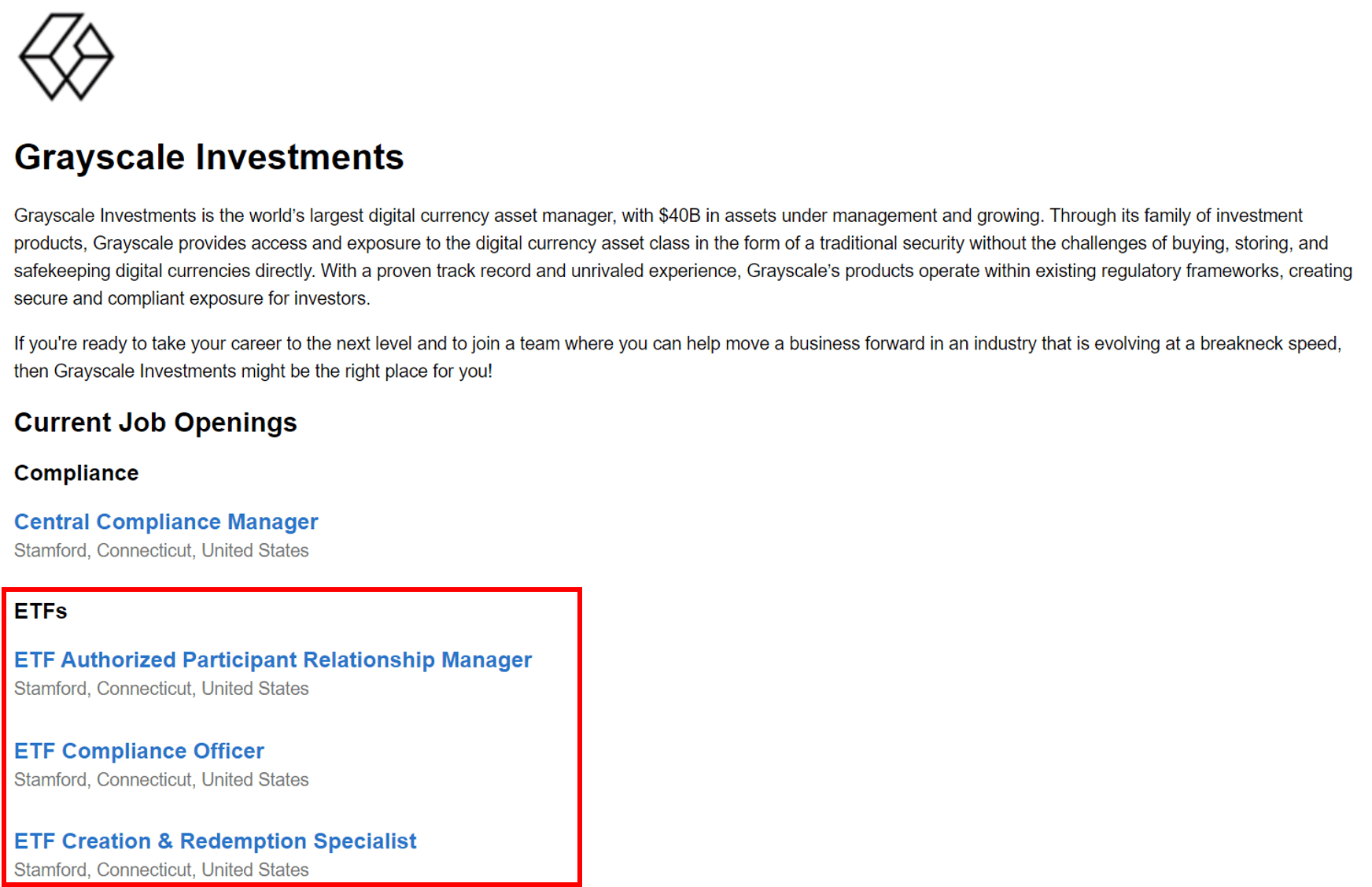 -Grayscale 招募 ETF 相關人才|截圖自 Grayscale 官網-