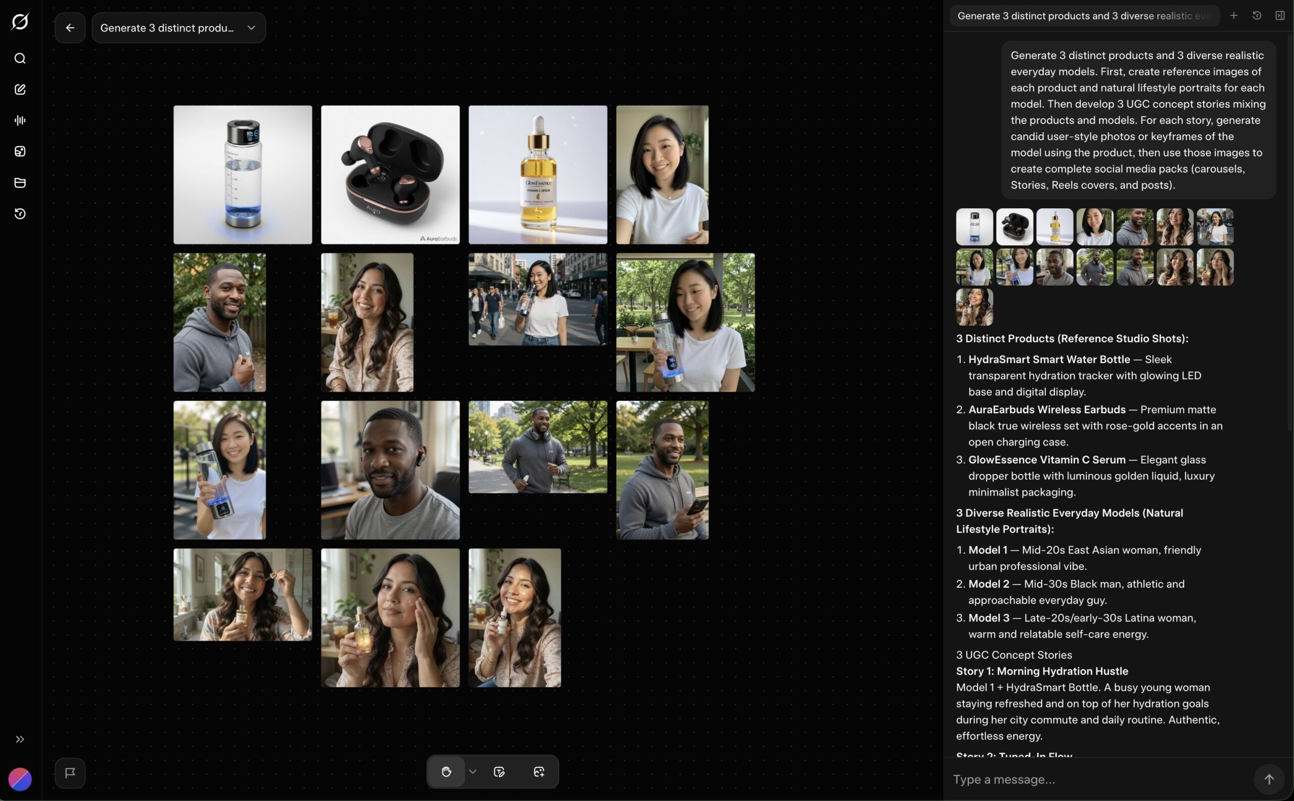 TestingCatalog 指出 Imagine Agent 可以處理複雜的多步指令,例如「生成一部 1 分鐘短片」「生成一整套漫畫」「生成 UGC 產品圖文包」。另一名使用者展示了 agent 先批次生成 3 組產品圖和 3 組模特照片,再自動組合成社群媒體素材包的完整流程。